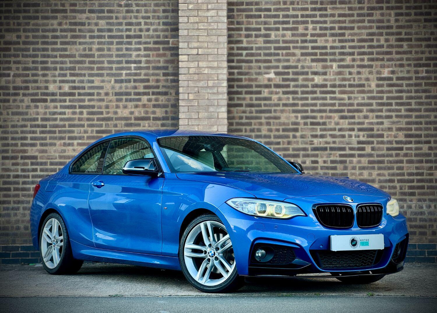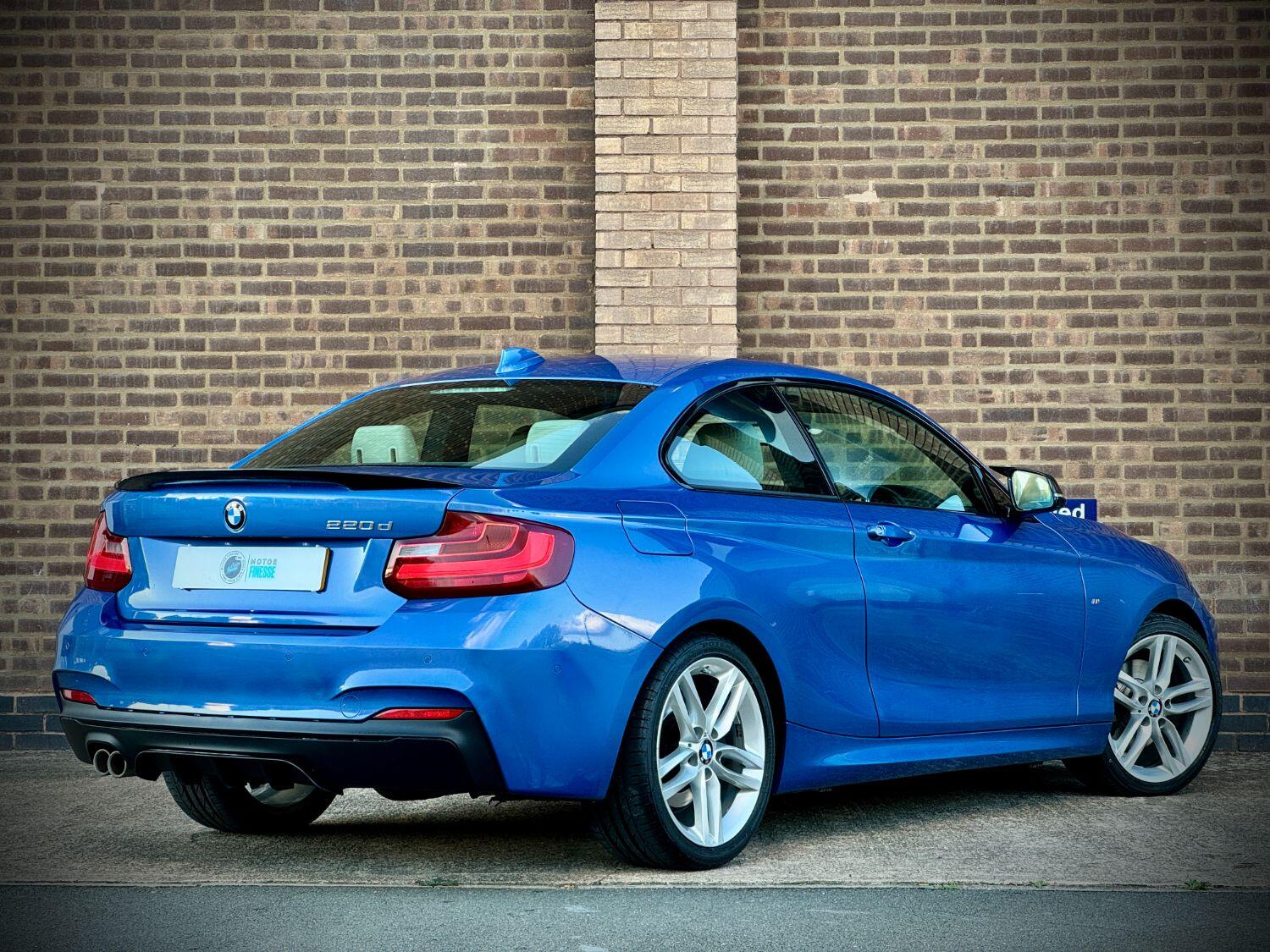 NATIONWIDE DELIVERY AVAILABLE RESERVE NOW WITH A FULLY REFUNDABLE DEPOSIT!! , =================================, Motor Finesse are offering you this stunning BMW 220d M Sport in Estoril Blue with only 1 previous keeper. ULEZ compliant. This vehicle comes with Full BMW Dealer Service History. Fresh service done by us ready for new keeper. Front and rear brake discs and pads changed @88k miles. Bridgestone tyres all round with more than 5+mm tread. Full folder of receipts. A well taken care example! Presented with full cream Dakota leather. Heated Electric memory seats. MOT expires in September 2026 with no advisories! , ================================= ,Great M Sport spec, AC, 18” Alloy Wheels in excellent condition. Electric Windows, Sat Nav, Electric Folding Mirrors, Bluetooth, Remote Door Locking, Climate Control, Front & Rear Parking Sensors, Park assist, Front and Rear Headrests. , 2 Keys, ==================================, Extra services offered: Alloy refurbishment - £160 / Privacy Glass - £90 / Ceramic Coating - POA